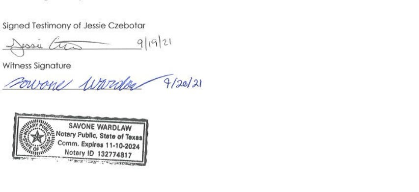 Signed Testimony of Jessie Czebotar